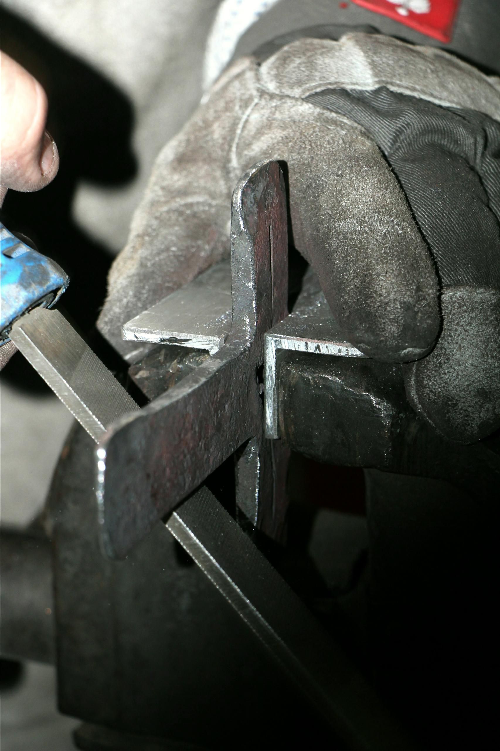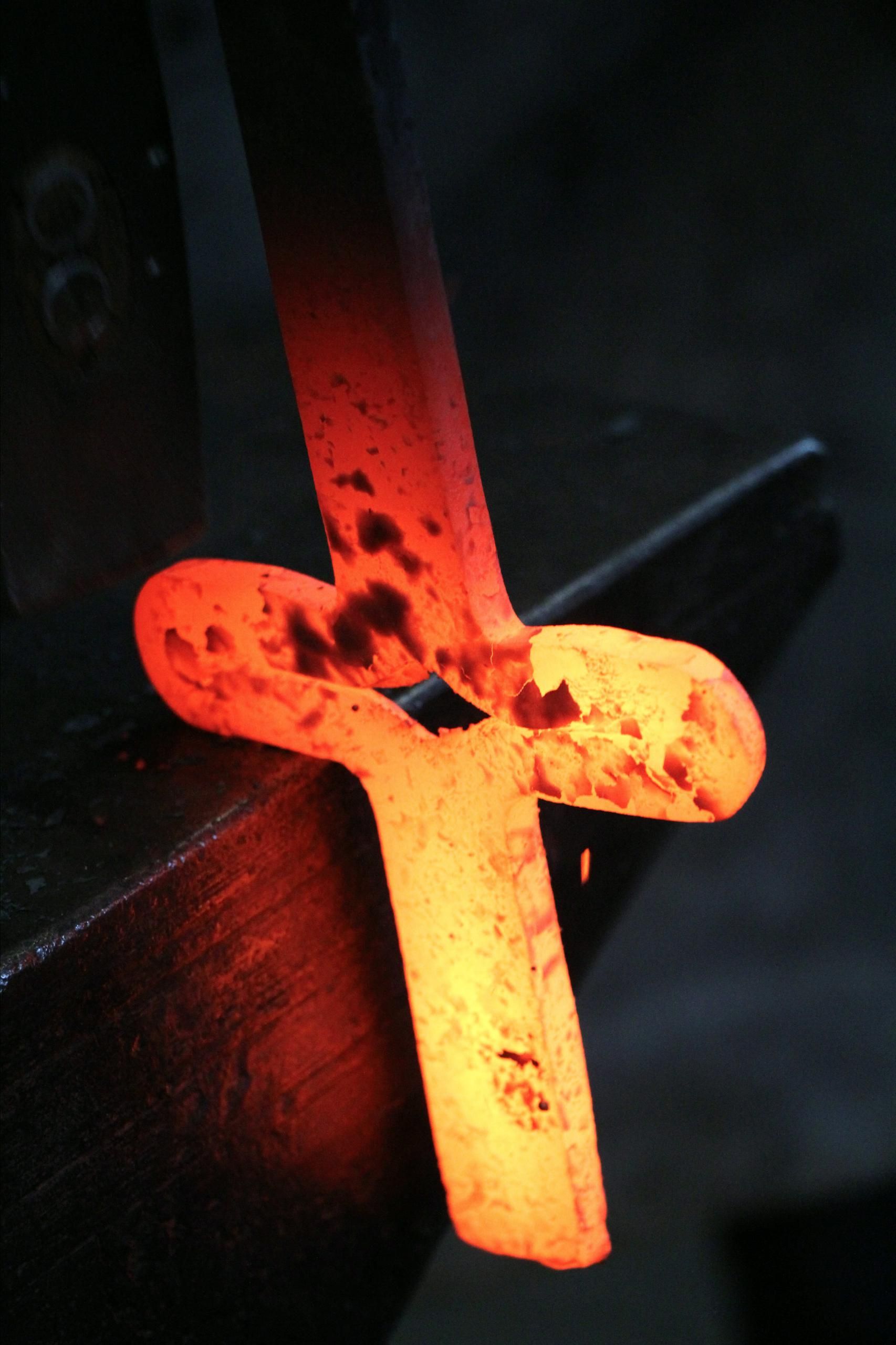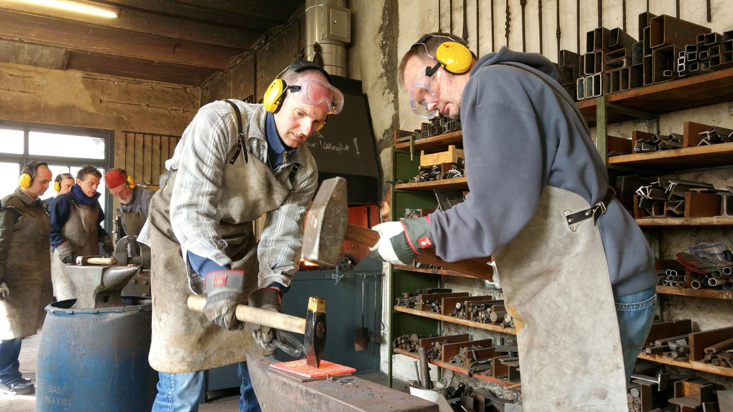 Im Rahmen der Komunionkinder- oder Firm-Katechese, biete ich für Väter und Männer das Schmieden von Kreuzen an. Bis zu 6 Männer stehen am Feuer, unterstützen sich gegenseitig bei der Feuerarbeit, um den Stahl zu spalten und in Form zu bringen.