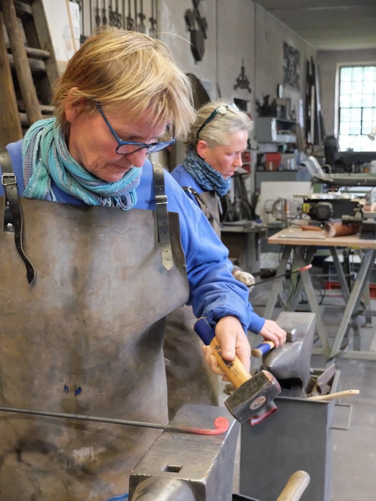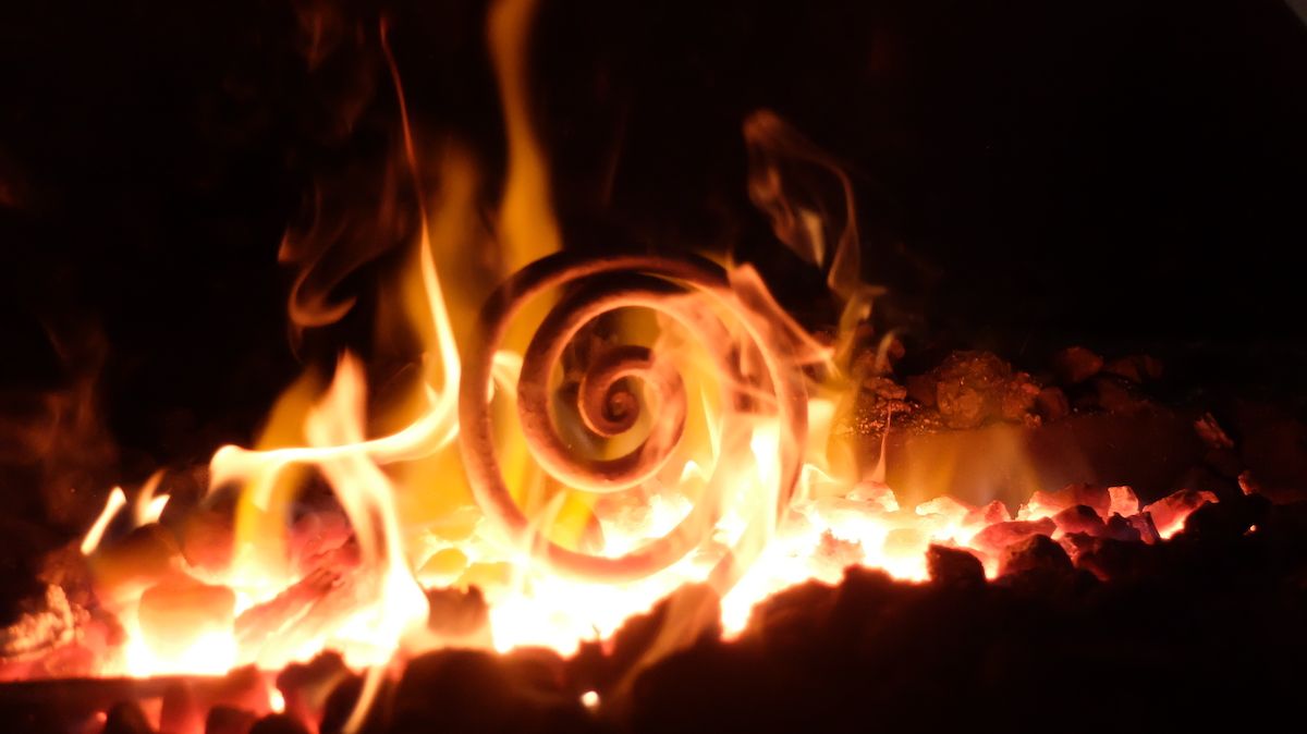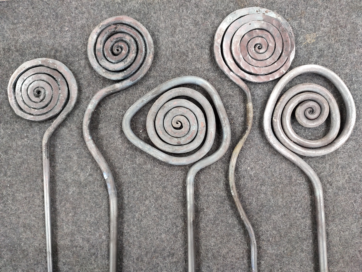 Wenn ich am Feuer stehe und noch nicht weiß, was ich schmieden möchte, entstehen zunächst einfach nur Spiralen. Spirale ist nicht gleich Spirale. Mal sind sie groß oder klein, eng gerollt oder mit Luft zwischen den Windungen, aus Rund – oder Vierkantmaterial. Ich mag Spiralen.Wenn sie möglichst perfekt werden sollen, wird es schwierig. Wenn ich alle Erwartungen loslasse und einfach nur mache, werden sie wunderbar und auf jeden Fall einzigartig.